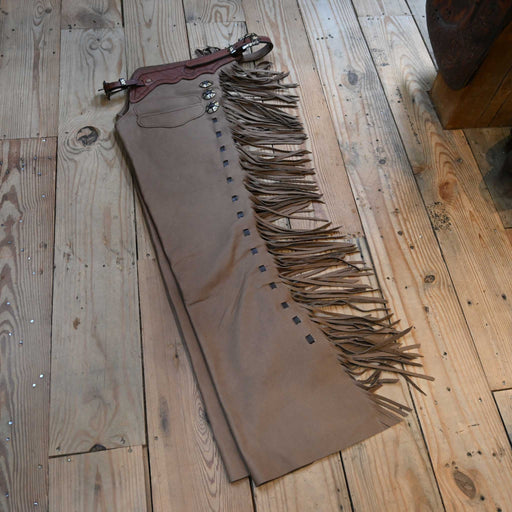 View full detailsOur Teskey's quality Roughout leather shotgun chaps are accented with a tooled yoke, Three silver conchos, belt and a single deep pocket for conven...