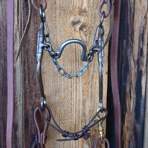 View full detailsMaker: Gordon Hayes Headstall: Split Ear Headstall Reins: Rope Reins Mouthpiece: Solid Port Cheek: 8 3/4" Curb: Chain with Nylon Straps Measur...