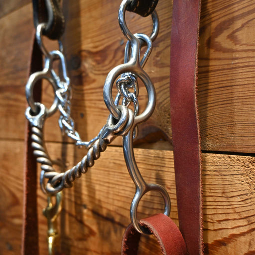 View full detailsHeadstall: Leather Split Ear Reins: Leather Split Reins Mouthpiece: C-Port Cheek: 8" Curb: Chain with Leather Straps Measurements are Approxim...