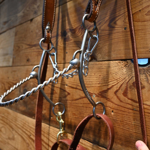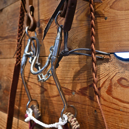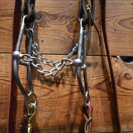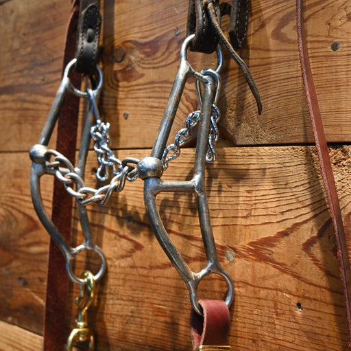 View full detailsMaker: Josh Ownbey Headstall: Leather Single Ear Reins: Leather Rope Reins Mouthpiece: Ported Chain Cheek: 8 1/4" Curb: Chain with Nylon Straps...