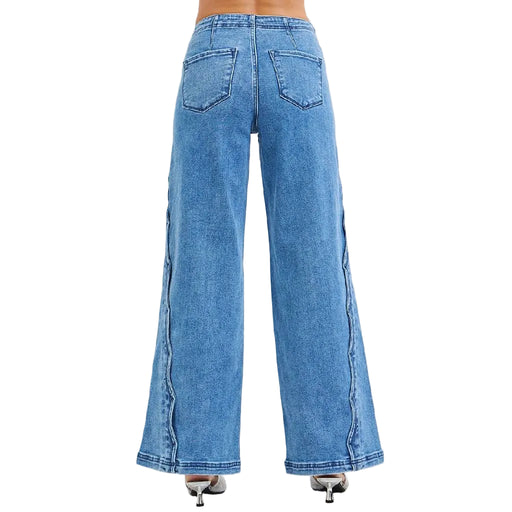 View full detailsStyle # PW21482 Embrace your best self in these high-rise wide-leg jeans designed to make you feel amazing. The scalloped edge detailing brings a t...