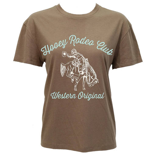View full detailsStyle # HT2628BR The Hooey Women's Rodeo Club Tee in Shitake Brown combines classic western style with everyday comfort. This crew neck tee feature...