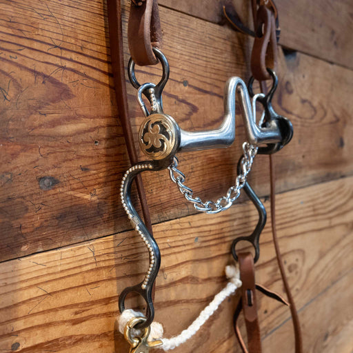 View full detailsMaker: Kerry Kelley Headstall: Leather Slit Ear Reins: Leather Rope Reins Mouthpiece: Ported Chain Cheek: 65 - 7" Curb: Chain Measurements are Ap...