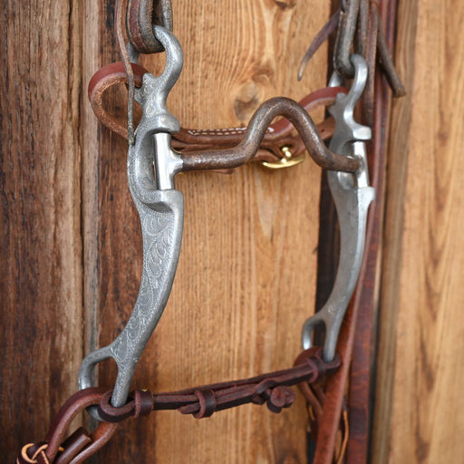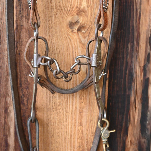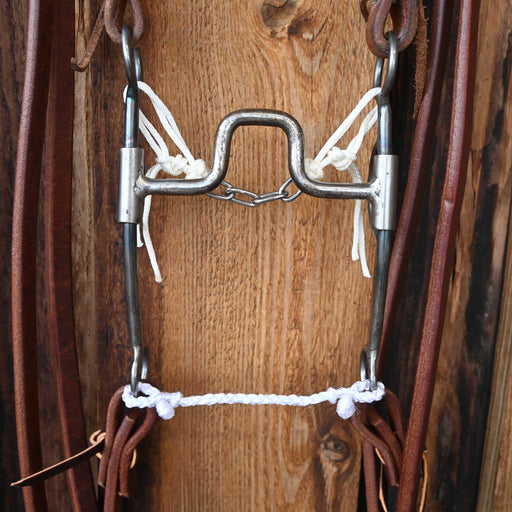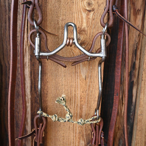 Maker: Tristan Mahoney Headstall: Single Ear Headstall Reins: Double Stitched Rope Reins Mouthpiece: Smooth Lifesaver Cheek: 7 1/2" Curb: Chain...