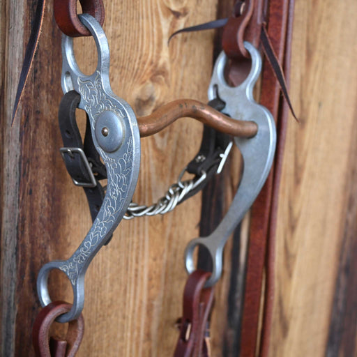 Headstall: Split Ear Reins: New Split Reins Mouthpiece: Copper Port Cheek: 8" Curb: Chain with Leather Straps
