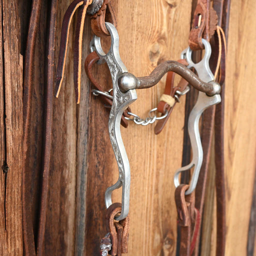 View full detailsHeadstall: Split Ear Reins: Split Reins Mouthpiece: Solid Port Cheek: 8 1/2" Curb: Chain with Leather Straps