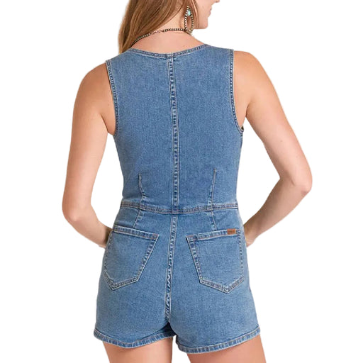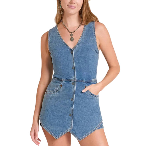 View full detailsStyle # BWR2D09106 Rock & Roll Denim Women's Sleeveless Vest Romper in a medium wash features a flattering V-neckline and sleeveless design per...