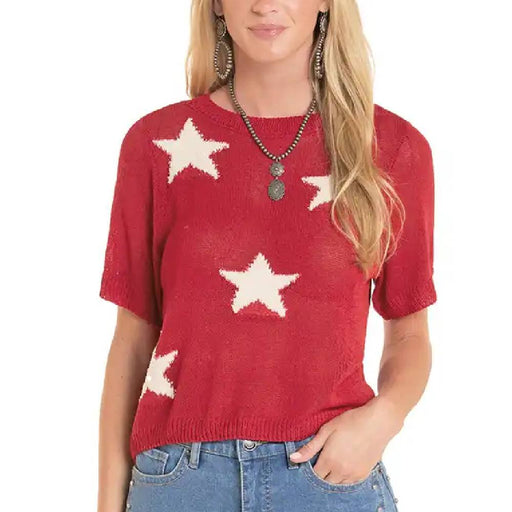 View full detailsStyle # BW31T08778 The Rock & Roll Denim Women's Star Sweater Tee features a classic red and white color combination with an eye-catching star ...