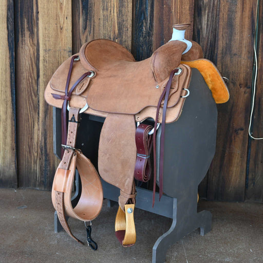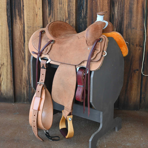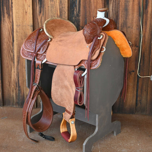 View full detailsThis new 15.5" Cactus Ranch saddle comes in a heavy oil 1/4 Caddo Rose tooling with a hard seat. For more information call a saddle salesman today ...