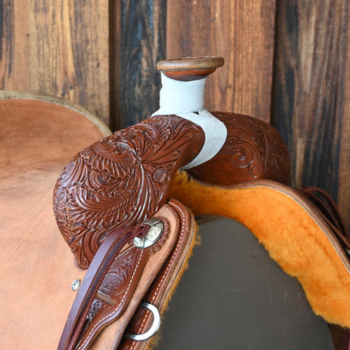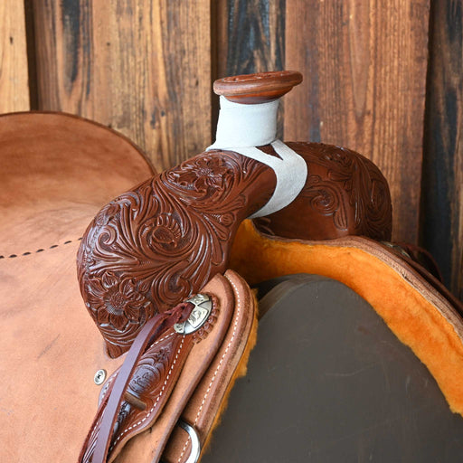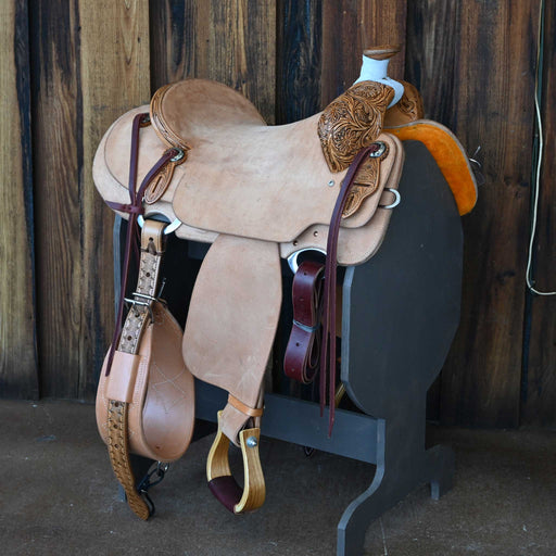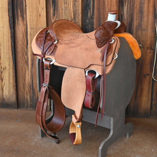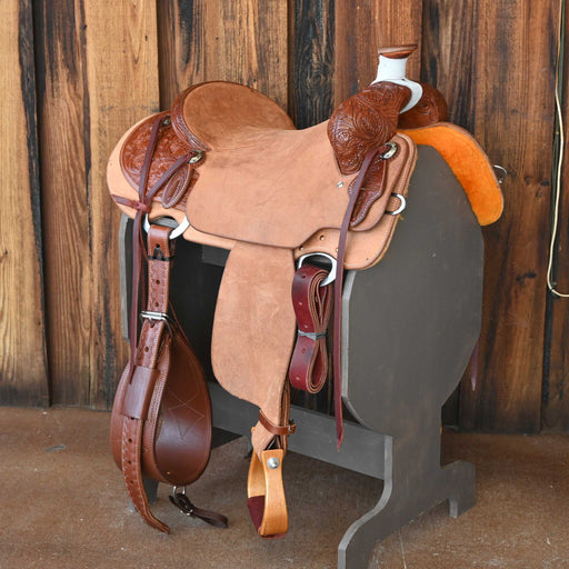 View full detailsThis new 15" Cactus Ranch saddle comes in a heavy oil 1/2 lone oak tooling with a hard seat. For more information call a saddle salesman today at 8...