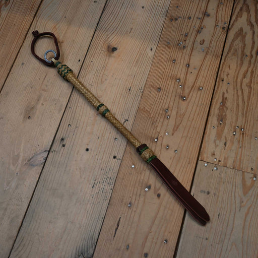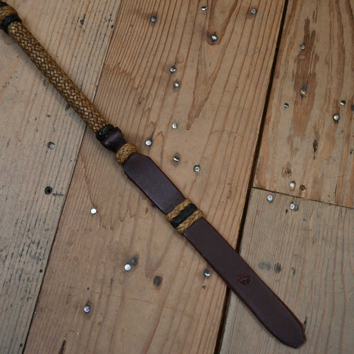 View full detailsHandcrafted by Bronc Willoughby, this 23" braided rawhide quirt combines traditional quality with reliable performance. The 14" base and 9" popper...