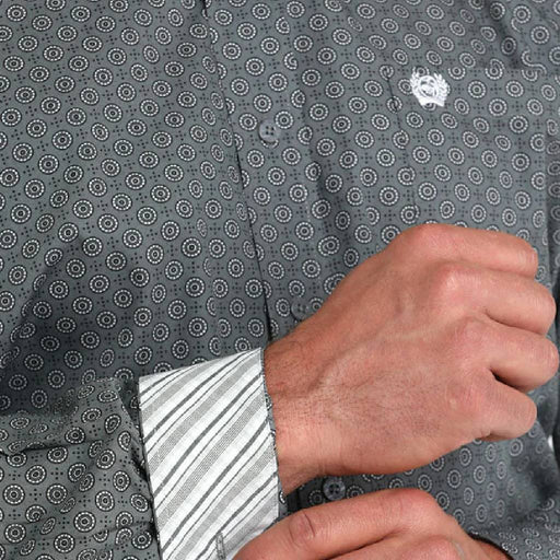 CinchStyle # MTW1105987 This Cinch button-down shirt showcases a refined geometric print across a grey base, crafted entirely from premium cotton for la...