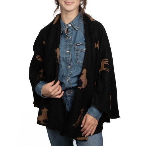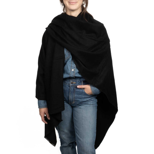 Rapti Fashions Inc.Style # PSC Ruana Measuring 25.5"x71", this ruana features a blend of 20% cashmere and 80% polyester for a soft, comfortable feel. Color: Black 25...