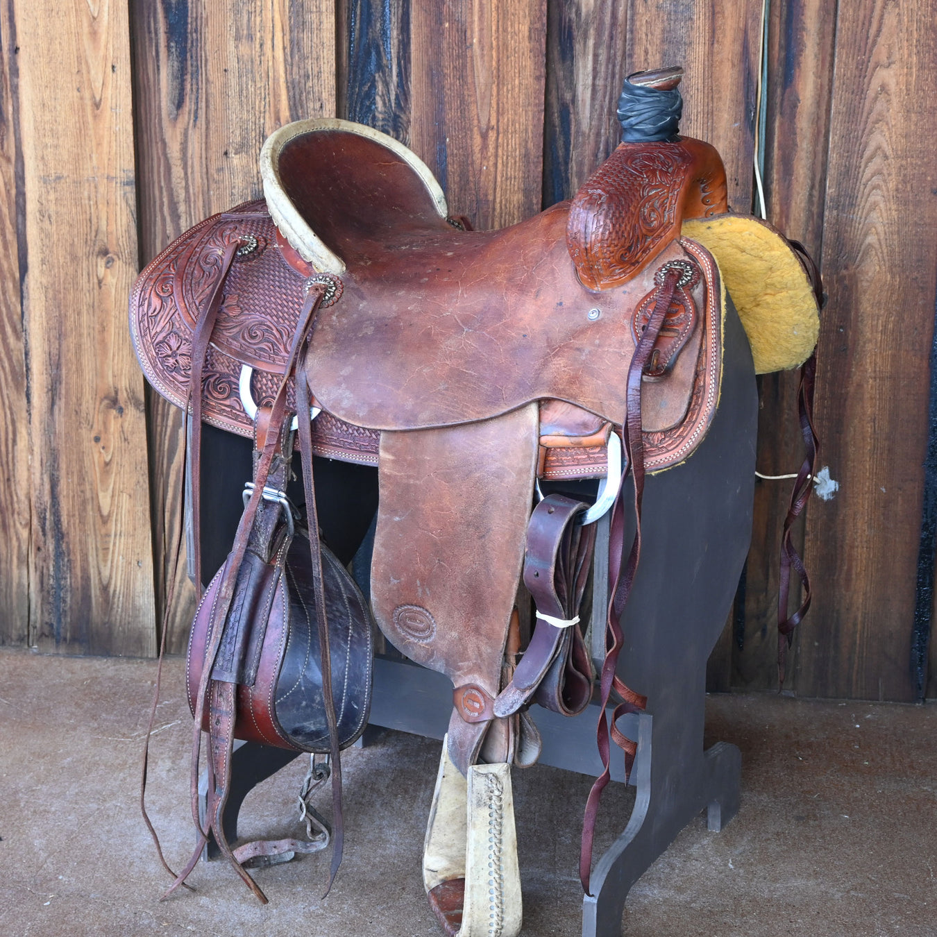 SHOPMADEThis used 12" Barrel saddle comes in a heavy oil floral tooling with a padded seat. For more information call a saddle salesman today at 888-955-29...