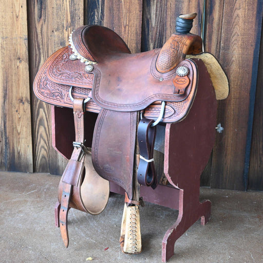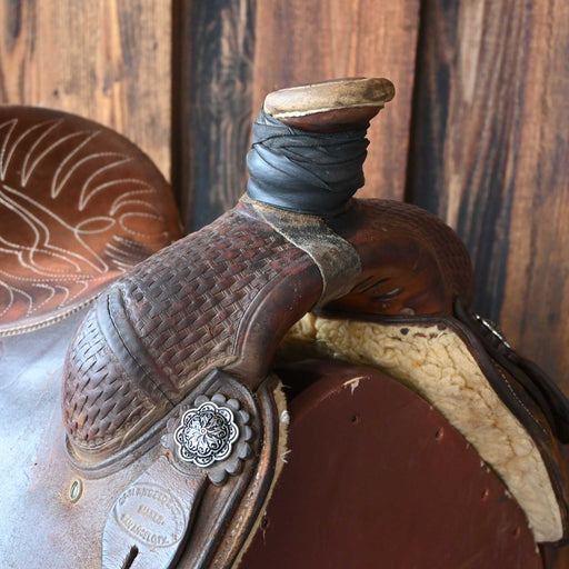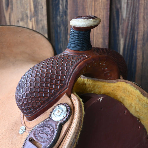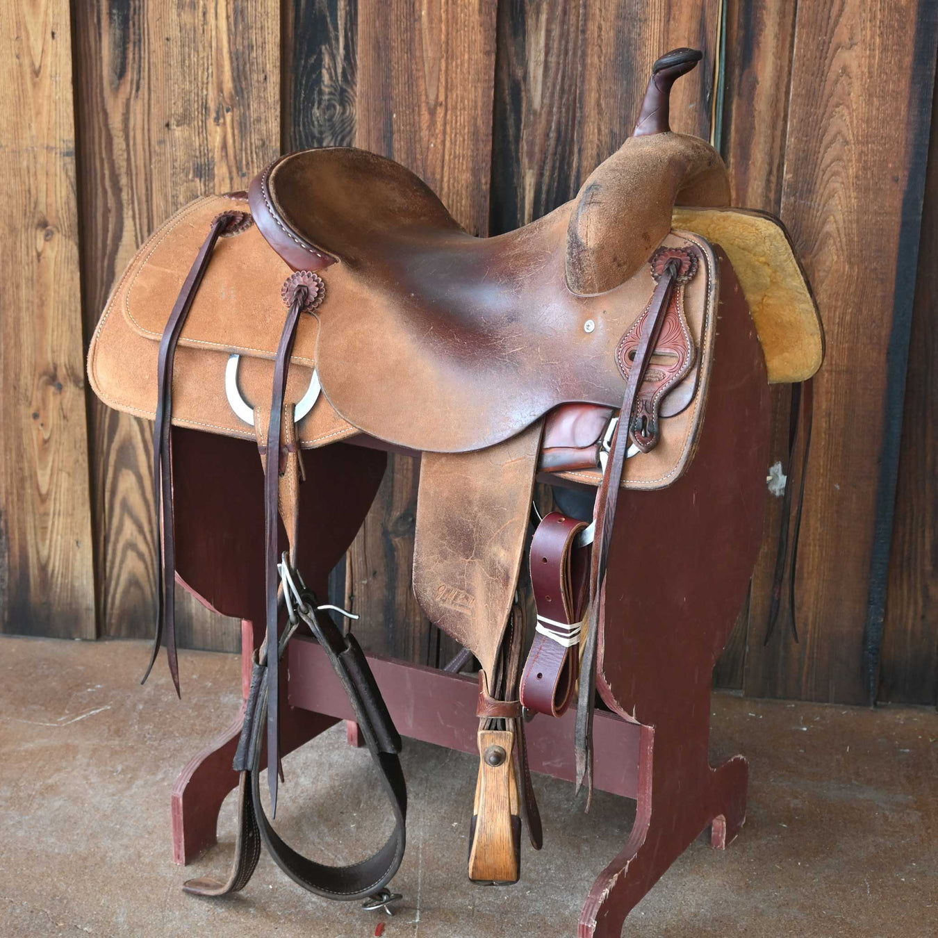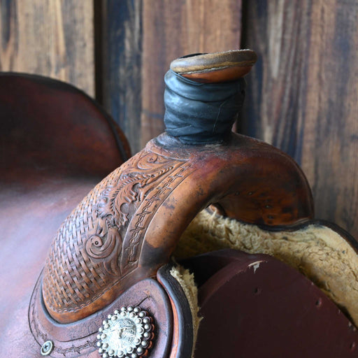 SHOPMADEThis used 15.5" Post Horn saddle comes in a heavy oil basket tooling with a hard seat. For more information call a saddle salesman today at 888-955...