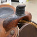 This used 13.5" Coats Team Roping saddle comes in a heavy oil floral tooling with a padded seat. For more information call a saddle salesman today at 888-955-2955.