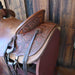 This used 13.5" Ranch saddle comes in a heavy oil floral tooling with a hard seat. For more information call a saddle salesman today at 888-955-2955.