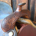 This used 14.5" Circle Y Barrel saddle comes in a chocolate geometric tooling with a lightly padded seat. For more information call a saddle salesman today at 888-955-2955.