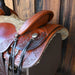 This used 14.5" Santa Fe Team Roping saddle comes in a heavy oil trophy, basket and floral tooling with a padded seat. For more information call a saddle salesman today at 888-955-2955.