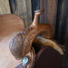 This new 15.5" Teskey's Barrel saddle comes in an antique 1/2 geometric tooling with a hard seat. For more information call a saddle salesman today at 888-955-2955.