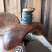This used 15.5" Vaga and Sons Team Roping saddle comes in a heavy oil oak and acorn tooling with a lightly padded seat. For more information call a saddle salesman today at 888-955-2955.