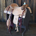 This new 15" Teskey's Ranch saddle comes in an antique 1/4 geometric and floral tooling with a hard seat. For more information call a saddle salesman today at 888-955-2955.