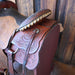 This used 15" Cowboy Classic Team Roping saddle comes in a heavy oil geometric and floral tooling with a padded seat. For more information call a saddle salesman today at 888-955-2955.