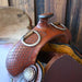This used 15" Stallion Tack Intl Training saddle comes in a heavy oil basket tooling with a hard seat. For more information call a saddle salesman today at 888-955-2955.
