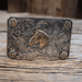 This 1950s Srour buckle is made from solid sterling silver with a 10k gold horse head front and center, flanked by four delicate 10k gold flowers in the corners. The back bears the name "Jacquie Felman," a reminder of the hands that wore this piece through the years. A timeless buckle for anyone who appreciates authentic craftsmanship and a touch of the past.