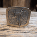 A 1992 Kit Carson belt buckle crafted in sterling silver with a desert scene and 3D saddle design. The detailed imagery brings Western landscape to life through quality metalwork. A well-made buckle from a recognized maker that appeals to those seeking authentic cowboy style.