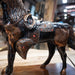 1940's - 1950's copper horse lamp on a wooden base with red stones that glow when lit.