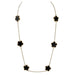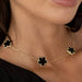 This Adeline Clover Necklace is crafted with Black Onyx to create an exquisite and shimmering accessory. The pearly finish and unique clover shape make it a timeless piece that you can take from day to night with ease!