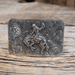 This sterling silver belt buckle captures the spirit of classic Western rodeo heritage. Crafted by renowned artisan Ahmad Khan of Hollywood, California, this bronc rider design showcases exceptional detail and authentic cowboy craftsmanship. The substantial sterling construction ensures durability and lasting shine, making it a standout piece for any serious buckle collector or rodeo enthusiast. Perfect for displaying your passion for the West or completing your authentic Western wardrobe with genuine style and character.