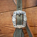 An army green roughout 3/4" headstall with traditional gunslinger stitching and a silver floral buckle. Simple, dependable gear. Each of these headstalls has a different buckle so be sure to check them out!