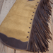 • Handmade Austin Valimont stepthrough chaps made from a roughout leather accented fringe, lacing and a tie ring. These pair of chaps are also made with two pockets.