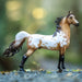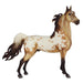 First introduced for Breyer's 50th anniversary, the American Saddlebred Stallion by Kathleen Moody is back to celebrate another milestone. Originally released in palomino, he’s been decorated for this celebration in a similarly golden hue: buckskin semi-leopard appaloosa!