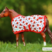 This blanket assortment features four fun patterns including ladybugs, sloths, cheetah print hearts, and flowers, all with a coordinated, colored trim.