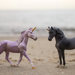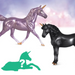 Hidden within the castle walls is a new unicorn foal waiting to be discovered. The set comes complete with a mare, a stallion, and a foal, of course! The Enchanted Forest family includes a pearly pink mare and a shaded black stallion. What color do you think their foal will be?