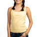 This elegant yellow tank top features a timeless sleeveless silhouette with a refined square neckline. Crafted from a luxurious blend of cotton and rayon with a touch of spandex, the ribbed fabric offers both comfort and subtle structure. The sophisticated composition ensures breathability and gentle stretch, making it an effortless essential for any wardrobe.