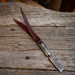 Handcrafted by D. Conway, the Copper Heart Cowboy Tool is a versatile little multi-tool that fits in your pocket. It features a bottle opener and a needle notch for those vaccine needles and its small pry bar end can also double as a flat head screwdriver. With a total length of 4 inches, it is a must-have for any cowboy or outdoor enthusiast.