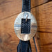 A navy blue roughout 3/4" headstall with traditional gunslinger stitching and a silver buckle. Simple, dependable gear. Each of these headstalls has a different buckle so be sure to check them out!
