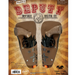 Includes two vinyl holsters, and two die-cast metal toy pistols. Deputy Double Holster Set fires fun 8 shot action ring caps. Features stylized holsters! Designed after the original pistols of the Wild West era. Constructed with solid die-cast metal that looks like real antique metal and quality plastic that looks just like real wood. Makes great Theatrical Props.