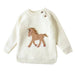 Your little one will feel cozy and confident in this delightful cream sweater. The playful horse design with pink bridle details sparks imagination, while practical brown buttons and reinforced ribbing at the collar, cuffs, and hem provide durability for everyday wear. Constructed from quality acrylic yarn with a soft fleece lining, it wraps your toddler in gentle warmth during cooler seasons. A sweet choice that combines comfort with charming style.