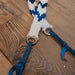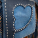Handmade blue roughout leather purse with fringe, buckstitch, a mohair strap and a pocket on both sides. Repurposed from real chap leather.