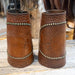 Vintage tooled Calf Roper by John Clark - Shakopee Mn with Brass dots and one snap closure. These cuffs are in great condition