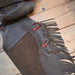 This Quality Dark Chocolate pair of Roughout Chinks have a Single Deep Pocket and Tie Ring. These are great for day working, branding, ranching, pasture riding and more.