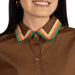 This refined brown button-down shirt features elegant embroidered detailing along the collar and sleeves for understated elegance. Crafted from pure cotton, it offers breathable comfort with a timeless appeal. The long sleeves and classic button closure make it versatile enough for both casual and polished occasions.