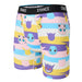 These boxer briefs feature a vibrant multicolor Pokemon design crafted from a polyester blend. They include feather seam construction and a core flex waistband for a comfortable fit. Made from 69% modal, 25% lyocell, and 6% elastane, they offer softness and stretch to support all-day wear.