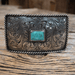 A 1970's Silver King sterling silver belt buckle with detailed engraving, a striking turquoise stone in the center, and a rope border framing the design. This is a beautiful piece that frames western style in a stunning yet minimal way.