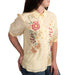 This 100% silk Johnny Was Smocked Lisbon Shirt features a floral embroidered design, short sleeves, and a button front closure. The elastic cuffs add a touch of comfort and style.
